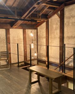 開催場所は、烏丸五条からほど近い、築130年の蔵をリノベーションしたGallery GOBANGURAです。そこはかつて「五番蔵」と呼ばれて、まちの営みとともに130年の歴史を刻んできた場所で、建物の梁などの佇まいが静謐で趣きを感じます。