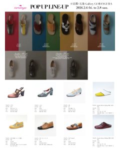 ラインナップは26SSの新作3点とbasic sneaker TG-25に加えて、tartarugaのおすすめするスタンダードデザインのレースアップシューズやローファーなどの10点をご用意いたします。また、ルームシューズ2種もオーダーいただけます。