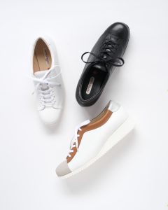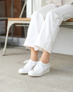 そうして完成したスニーカーはミニマルでありながら、足が美しく見えるようにこだわったデザインで、まさに、大人の女性が履くに相応しいクオリティを備えたnew basic sneakerとなりました。