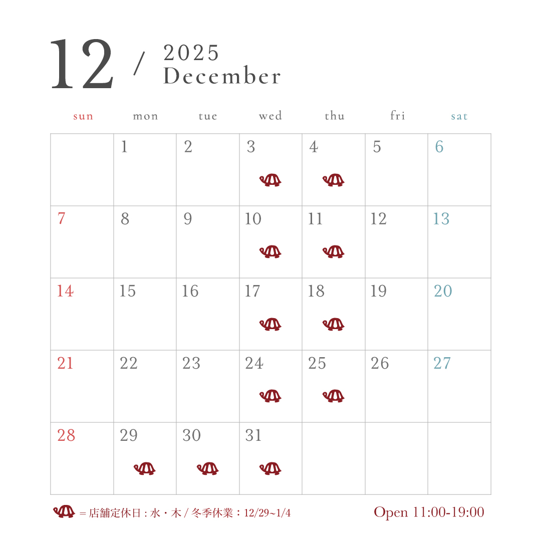 [ 冬季休業 ] 12/29(月)~1/4(日)